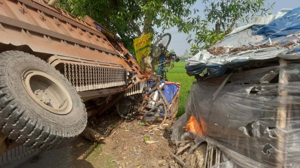 নিয়ামতপুরে সড়কে ত্রিমুখী সংঘর্ষ, নিহত ১ আহত ৬