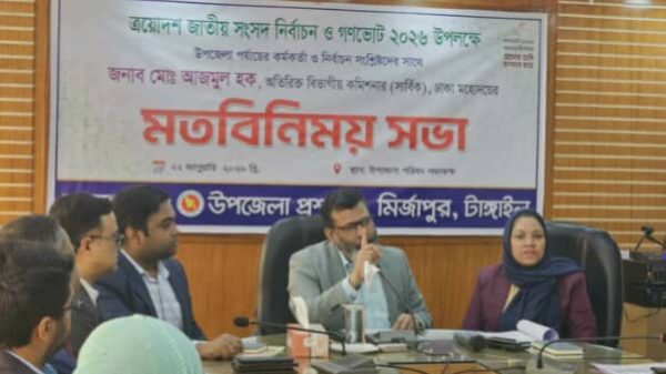 আগামী ১২ ফেব্রুয়ারি ত্রয়োদশ জাতীয় সংসদ নির্বাচনে গণভোট প্রচারনার উপলক্ষে মির্জাপুর উপজেলা পর্যায়েয়ে কর্মকর্তা ও গণমাধ্যমকর্মীদের সঙ্গে মতবিনিময় সভা করেন, ঢাকা বিভাগীয় অতিরিক্ত বিভাগীয় কমিশনার (সার্বিক) মো. আজমুল হক।