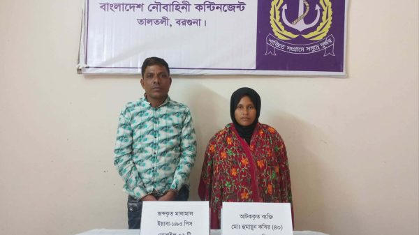 বরগুনার তালতলী উপজেলায় নৌবাহিনী ডিটাচমেন্ট ও তালতলী থানা পুলিশের যৌথ চেকপোস্ট অভিযানে ১৪৮৫ পিস ইয়াবাসহ দুইজন চিহ্নিত মাদক ব্যবসায়ীকে আটক করা হয়েছে। মঙ্গলবার ৯ ডিসেম্বর দুপুরে উপজেলার ফায়ার সার্ভিস স্টেশনের