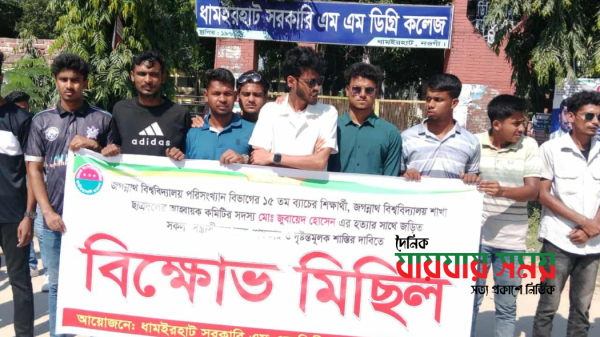নওগাঁর ধামইরহাটে জগন্নাথ বিশ্ববিদ্যালয়ের শিক্ষার্থী ও ছাত্রদল নেতা জুবায়েদ হোসেন হত্যার প্রতিবাদে বিক্ষোভ মিছিল অনুষ্ঠিত হয়েছে। মঙ্গলবার (২১ অক্টোবর) দুপুর ১২টায় ধামইরহাট সরকারি এম. এম. ডিগ্রি কলেজ ছাত্রদলের উদ্যোগে বিক্ষোভ ...বিস্তারিত পড়ুন