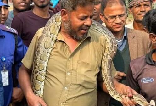 কুড়িগ্রামের ভূরুঙ্গামারী উপজেলার সদর ইউনিয়নে কামাত আঙ্গারীয়া ( ভাসানীপাড়া) গ্রাম থেকে প্রায় ৯ ফুট লম্বা বিশাল আকৃতির একটি অজগর সাপ উদ্ধার করা হয়েছে। শনিবার (২ ডিসেম্বর) দুপুরে ভূরুঙ্গামারী সার্কেল এএসপি ...বিস্তারিত পড়ুন