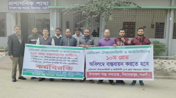 ১১তম গ্রেড থেকে ১০ম গ্রেডে উন্নীতকরণের দাবিতে সারাদেশের ন্যায় নওগাঁর নিয়ামতপুরে মেডিকেল টেকনোলজিস্ট ও ফার্মাসিস্টরা অর্ধদিবস কর্মবিরতি পালন করেছে। উপজেলা স্বাস্থ্য কমপ্লেক্স চত্বরে বুধবার (৩ ডিসেম্বর ) সকাল ৮টা থেকে ...বিস্তারিত পড়ুন