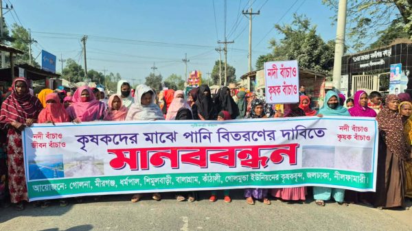 নীলফামারীর জলঢাকায় বুড়ি তিস্তা নদী খনন করে সেচ সুবিধা নিশ্চিতের দাবিতে মানববন্ধন ও সড়ক অবরোধ কর্মসূচি পালন করেছেন স্থানীয় কৃষকেরা। সোমবার (৮ ডিসেম্বর) দুপুরে জলঢাকা–ডিমলা সড়কের কালিগঞ্জ বাজার এলাকায় ঘণ্টাব্যাপী ...বিস্তারিত পড়ুন