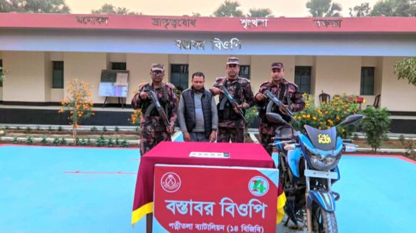 নওগাঁর ধামইরহাট সীমান্তে ২৬ ডিসেম্বর শুক্রবার বিকেল ৫ টায় বস্তাবর বিওপি’র টহল কমান্ডার সুবেদার মোঃ তৌফিকুল ইসলাম এর নেতৃত্বে একটি বিশেষ টহল দল সীমান্ত পিলার ২৬৩/৩-এস হতে আনুমানিক ৩.৫ কিঃমিঃ ...বিস্তারিত পড়ুন